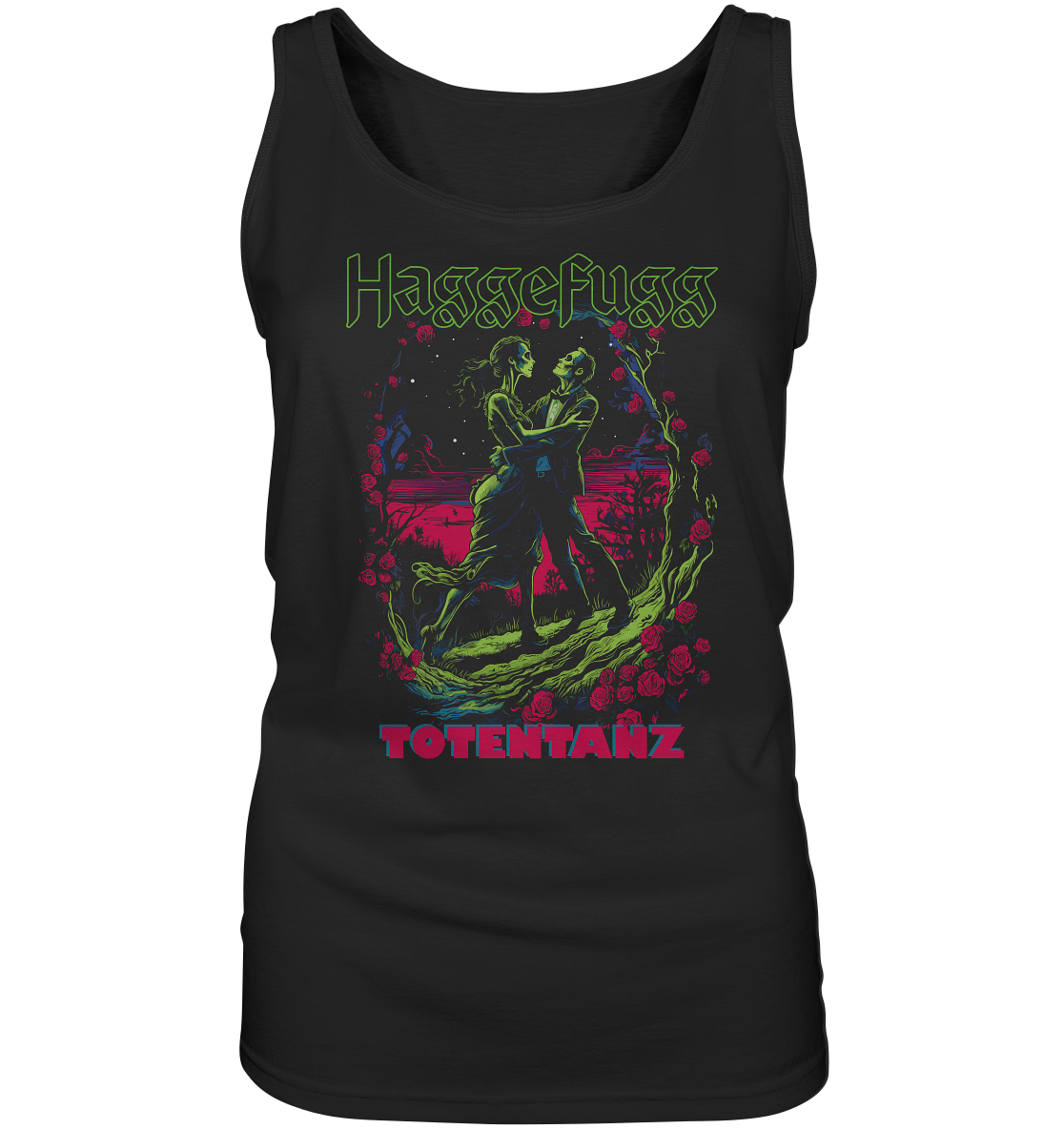 Totentanz - das ausgefallene Motiv-Top zum passenden Song des neuen Haggefugg Albums "Tanz und Gloria". Schwing deine müden Knochen! Hochwertige Qualität, aus biologischer und fairer Herstellung. Mit Peta Zertifizierung für tierfreundliche Produktion. Zeige deine Leidenschaft zur Musik und kleide dich nachhaltig!